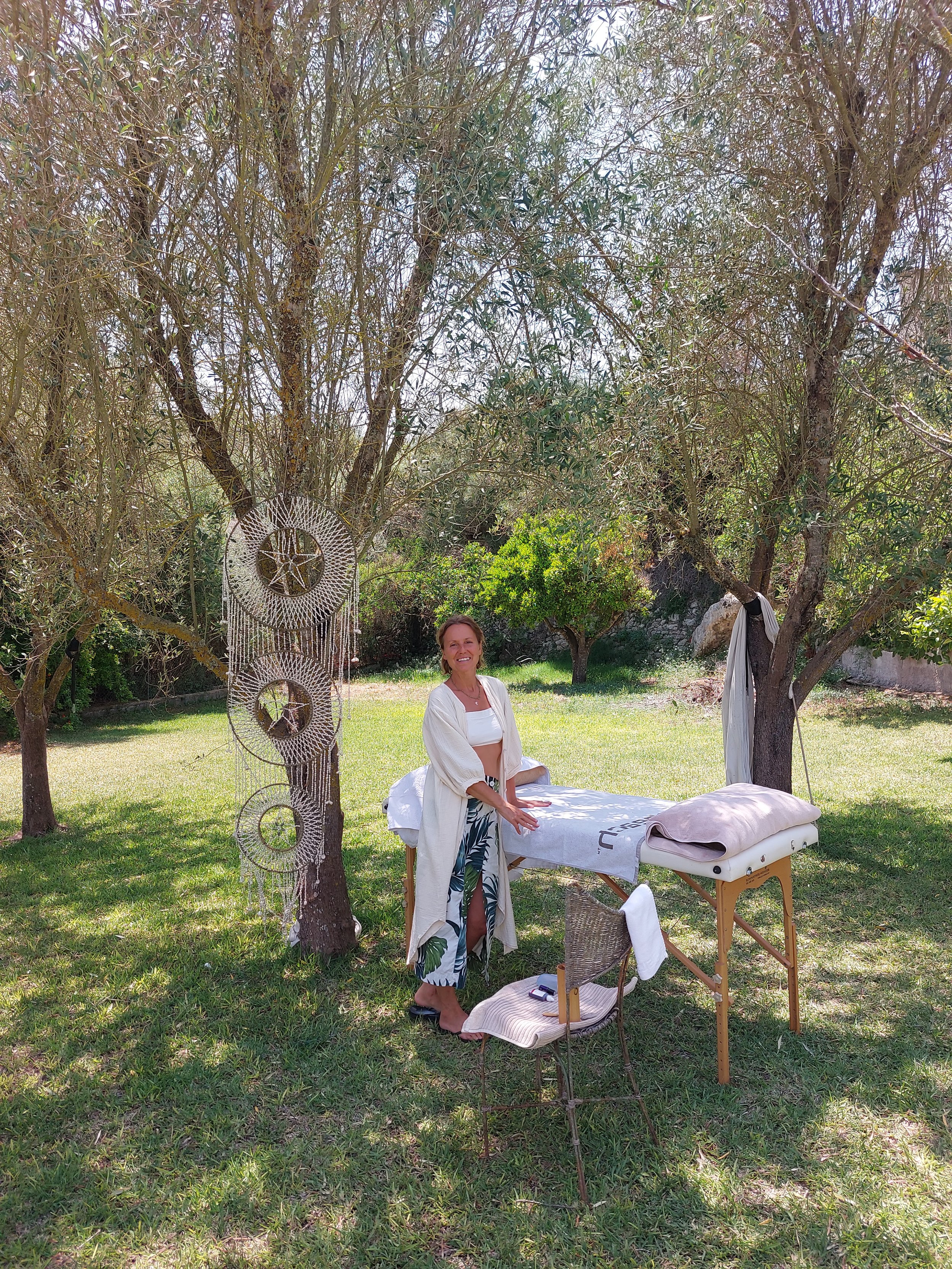 This retreat anchored me. It showed me that I am on the right path…that I look forward to continuing. I experienced magical moments, receiving a massage while lying under the olive trees swaying in the wind, sharing powerful moments with the group by candlelight, stretching under the sky with my feet caressing the morning grass. The flavors and colors of the magical meals! Also, discovering charming beaches and villages on the island. A thousand thanks!!